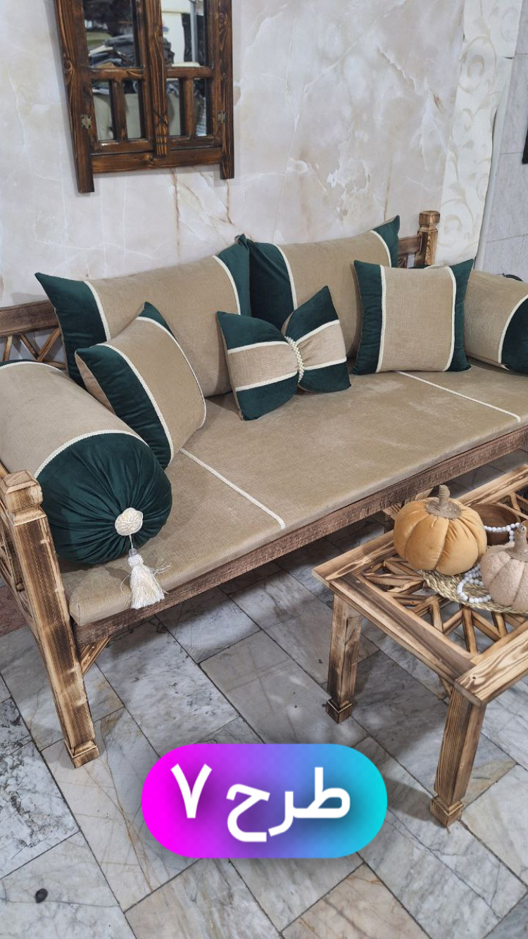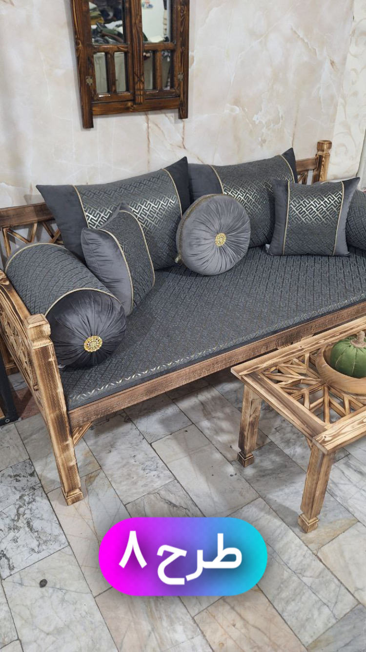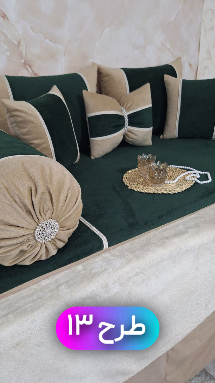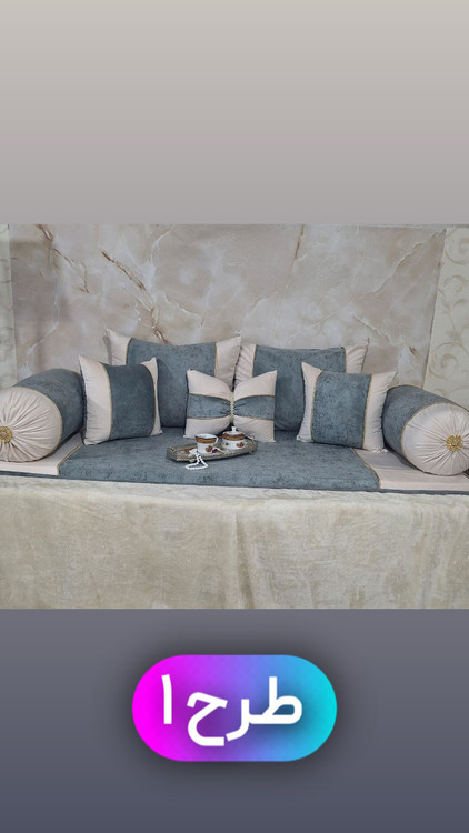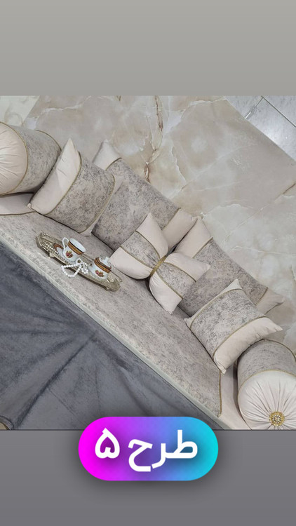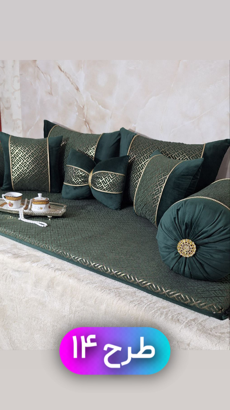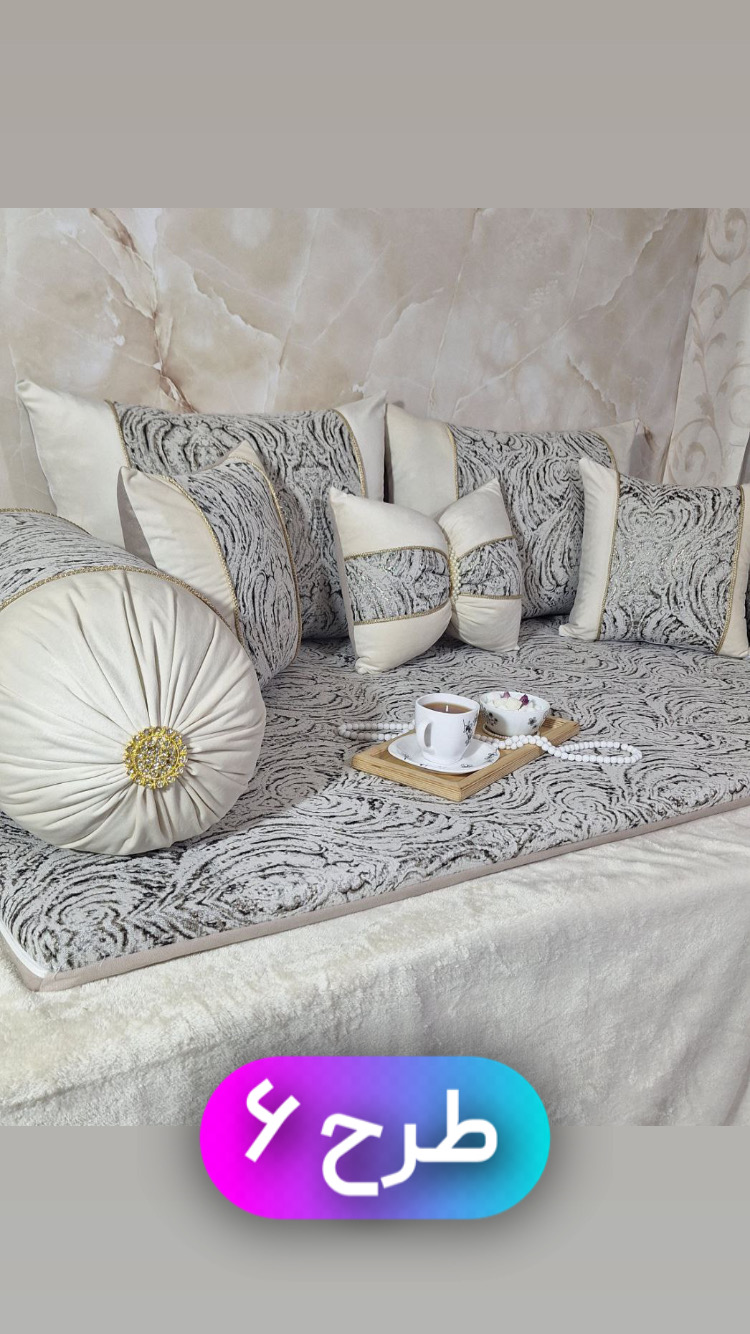 ✅ست ۸ تکه کامل شامل: دو روبالشتی، دو رو کوسنی مربع، یک کوسن پاپیونی، دو روبالش لولهای و یک تشک همه موارد پرشده است