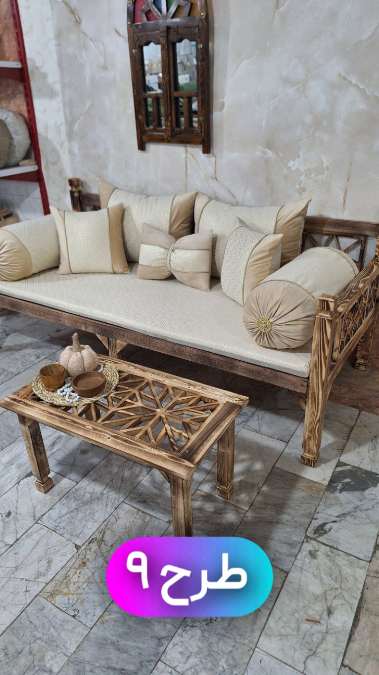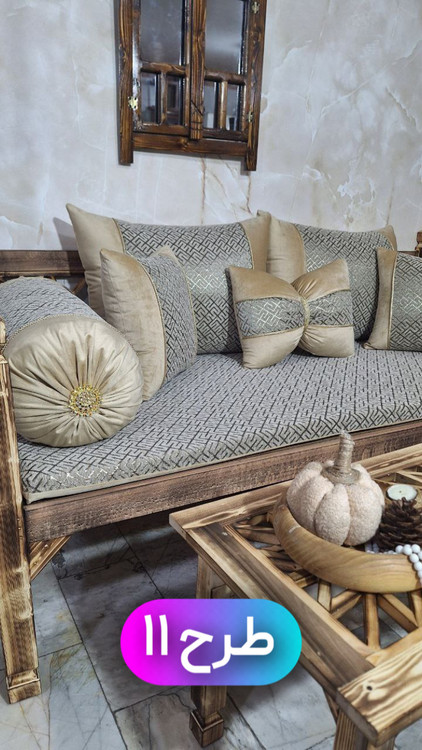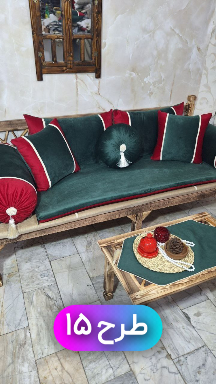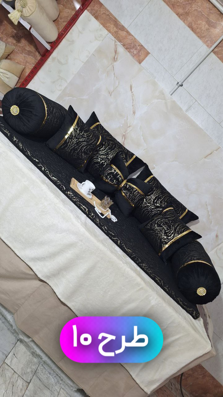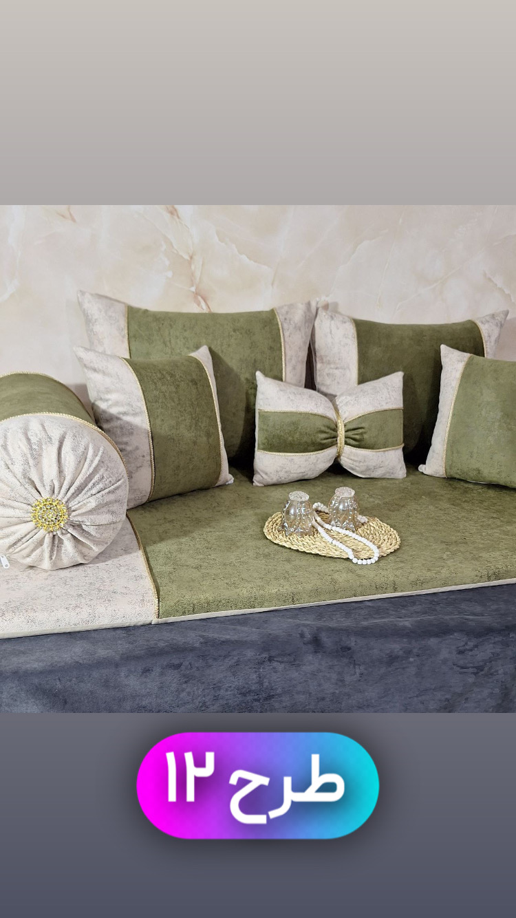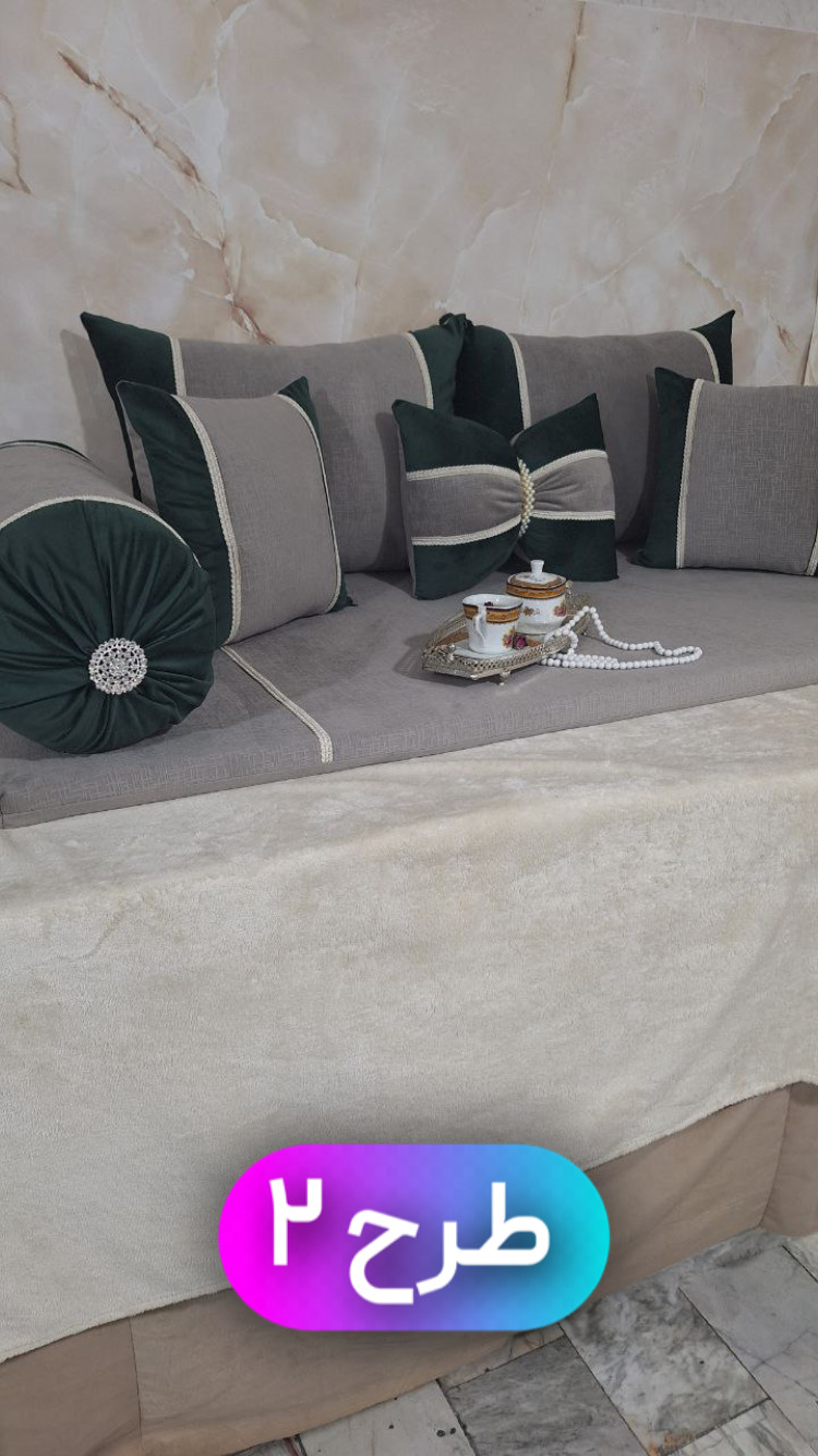 ✅ست ۸ تکه کامل شامل: دو روبالشتی، دو رو کوسنی مربع، یک کوسن پاپیونی، دو روبالش لولهای و یک تشک همه موارد پرشده است