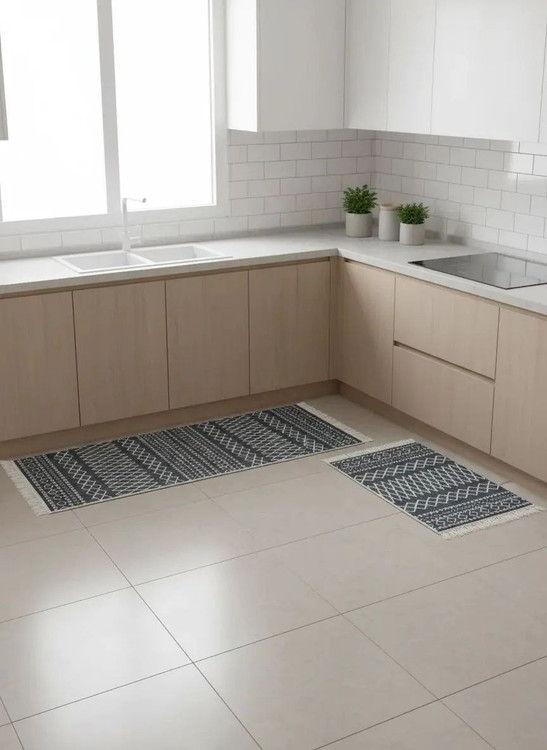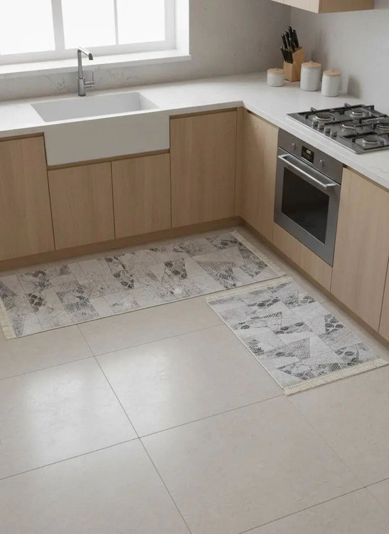 ✔️ ترکیب دو تکه باعث میشود هم فضای جلوی سینک و هم جلوی کابینت ورودی آشپزخانه پوشش داده شود.