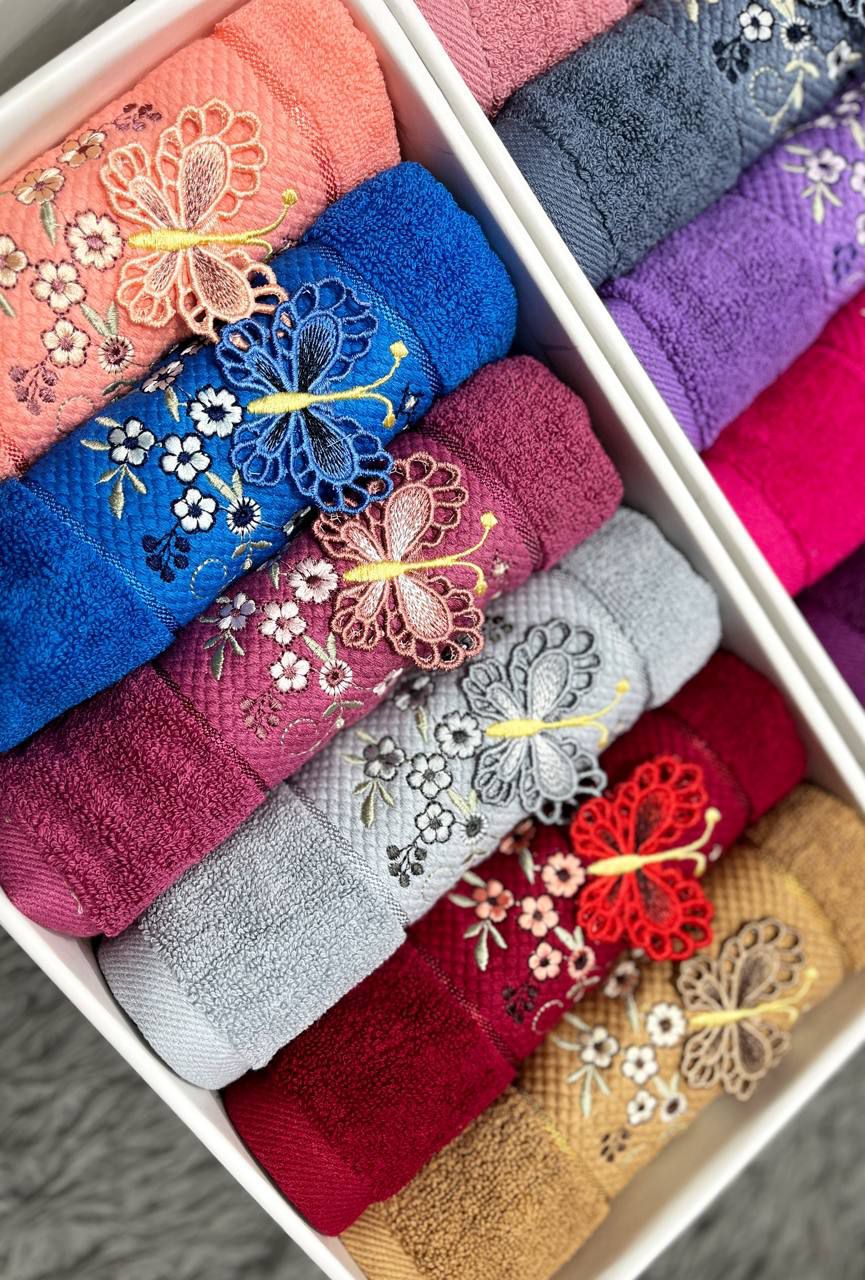 گلدوزی ظریف طرح پروانه 🦋 جلوهای شیک و لاکچری به حوله داده و بستهبندی جعبهای آن، ارزش هدیهای محصول را چند برابر کرده است. سایز استاندارد ۳۵×۷۰ نیز استفادهی راحت و کاربردی را تضمین میکند.