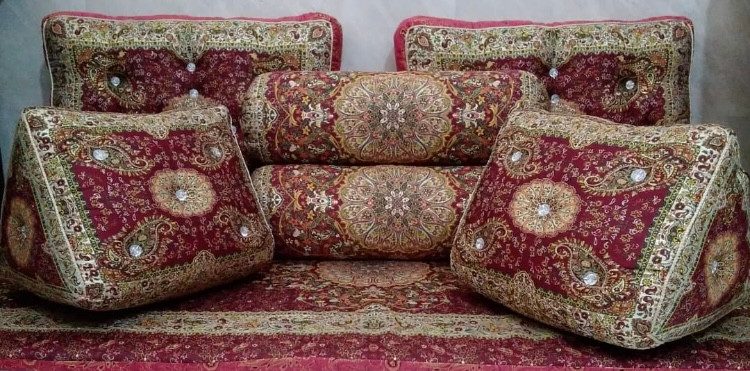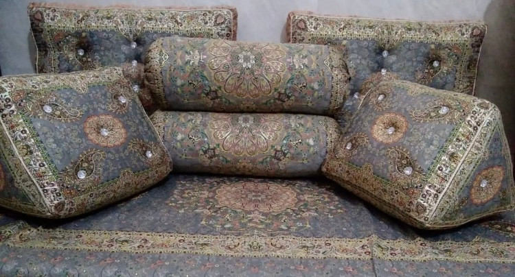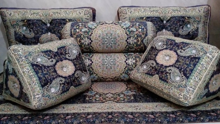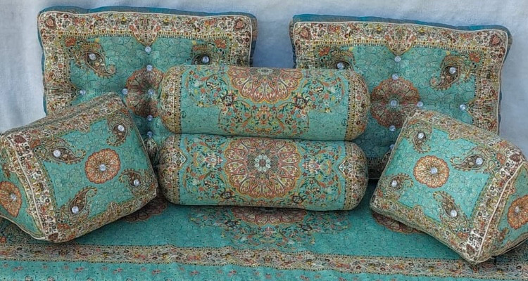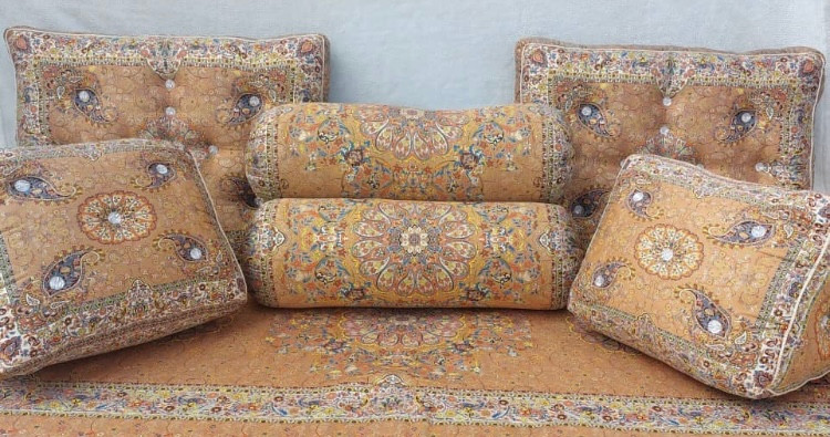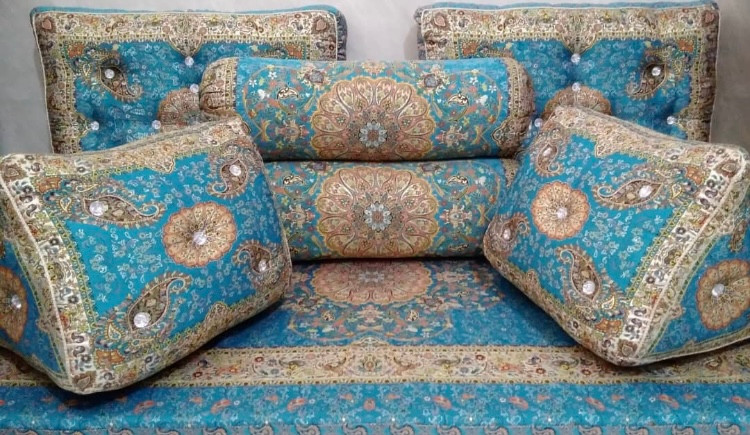 نقد و بررسی سرویس هفتتکه افشاری با پارچه ترمه برای تخت سنتی