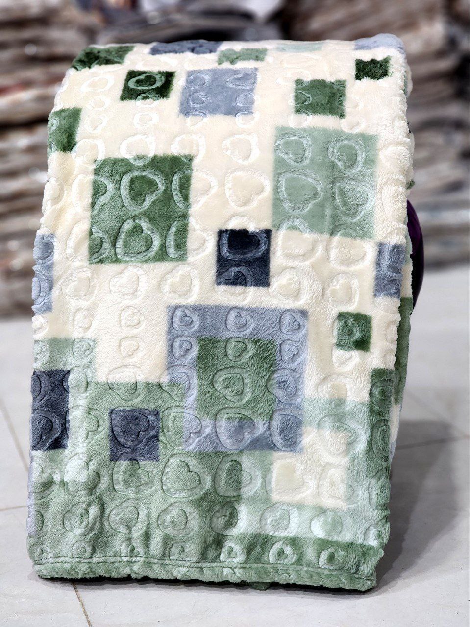 سطح پتو دارای طراحیهای برجسته است که بافتی لطیف و چشمنواز به آن میدهد. این ویژگی نه تنها به زیبایی بصری آن کمک میکند، بلکه هنگام لمس نیز حس گرما و لطافت خاصی منتقل میشود.